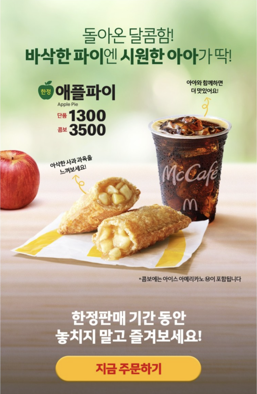 맥도날드 애플파이 재출시 소식을 전해드리려고 합니다.