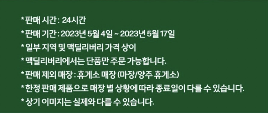 2023년 5월 4일부터 5월 17일까지, 딱 2주 한정기간 판매된다고 합니다.