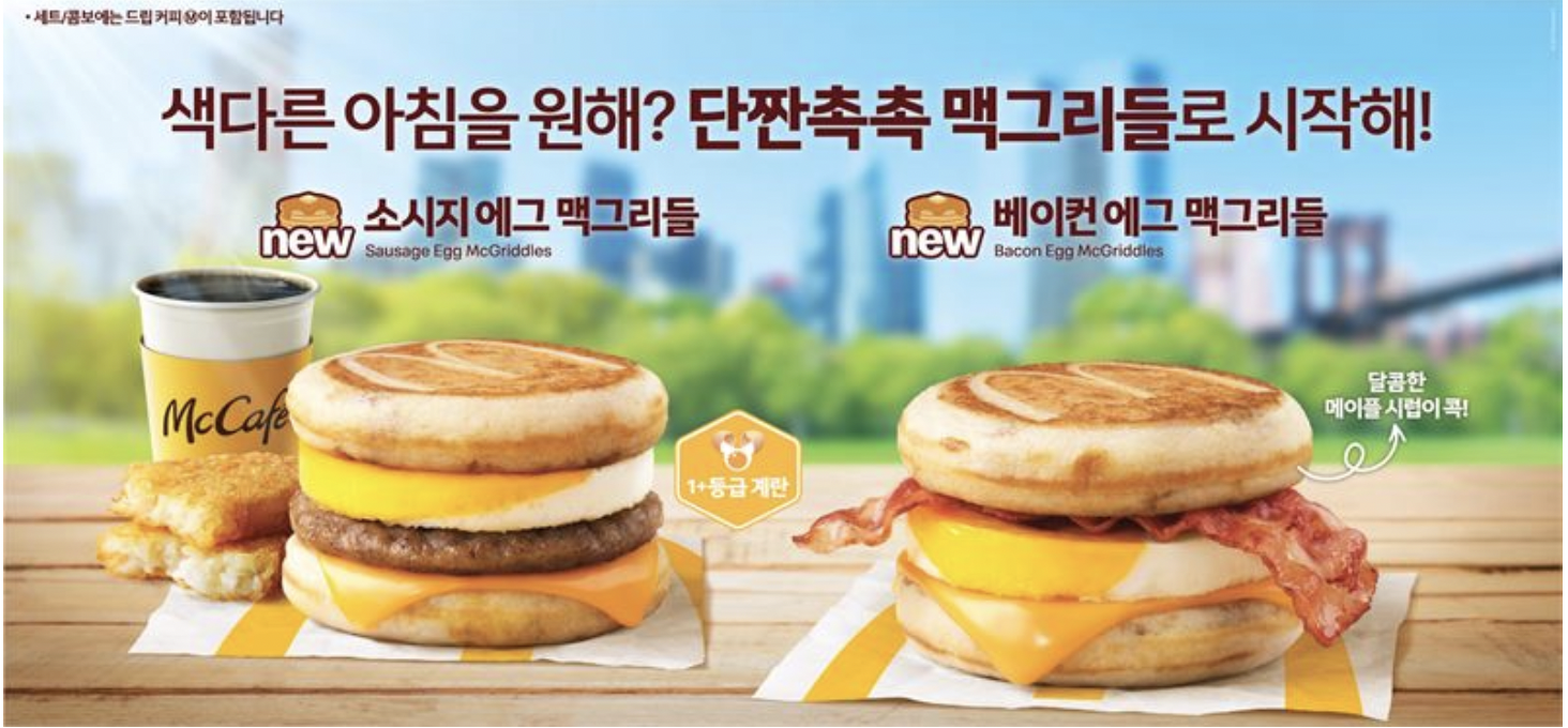 단짠촉촉 맛있는 소시지 에그 맥그리들도 구매했고요ㅎㅎ 맥그리들도 재출시되어서 진짜 기뻤어요. 애플파이와 마찬가지로 맥그리들도 호불호가 있지만 저는 호!!! 메이플 시럽이 적당히 촉촉하게 베인 핫케이크 번이 부드럽고 맛있어서 작년에 맥그리들 출시되었을 때 부지런히 먹으러 다녔는데, 맥그리들도 한정 기간 출시되었다가 단종되어 너무 슬펐거든요ㅠㅠ 근데 이번에 재출시되어서 다시 주문했어요.