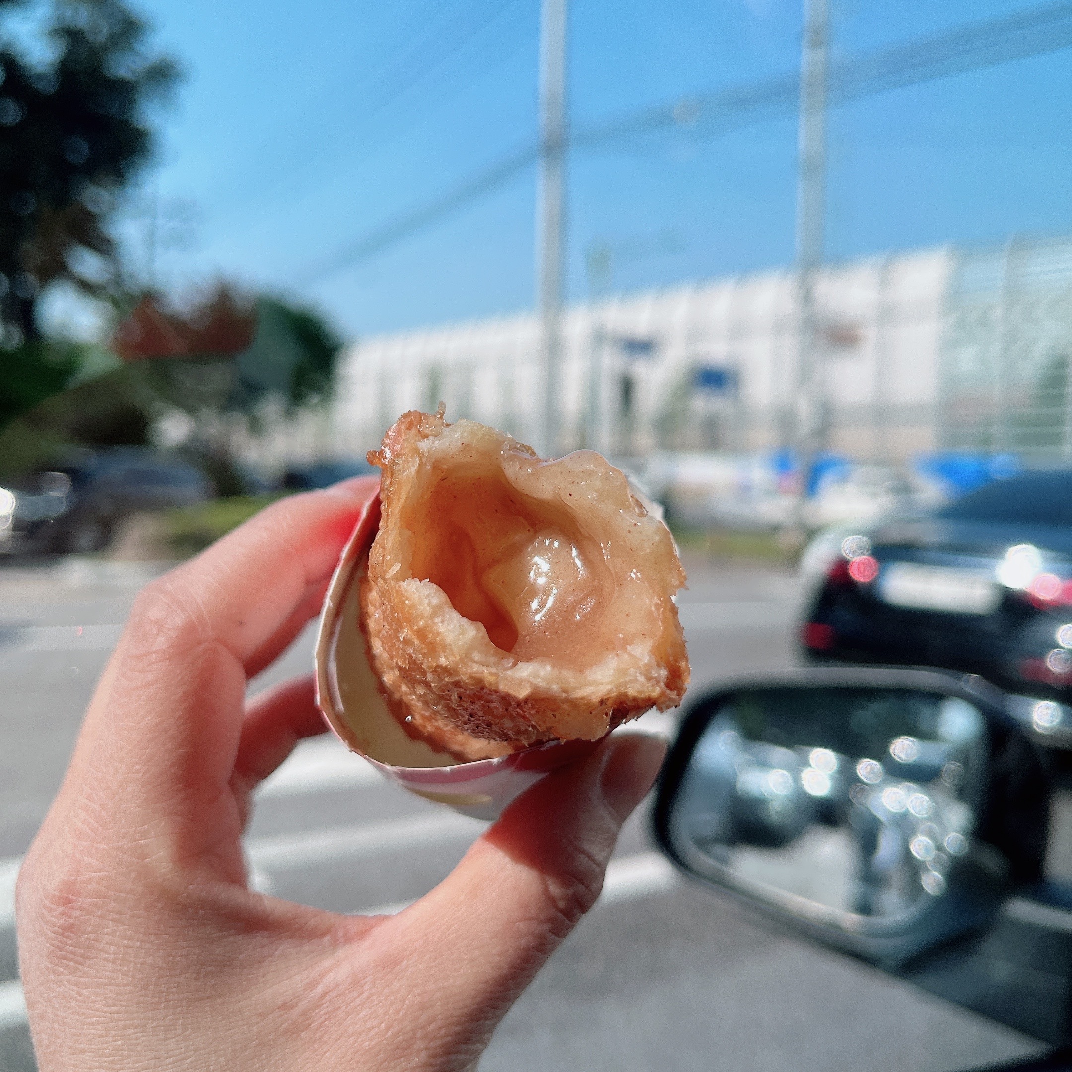 아침 출근길에 차가 너무 막혀서 결국 참지 못하고 중간에 애플파이를 뜯어버렸습니다.