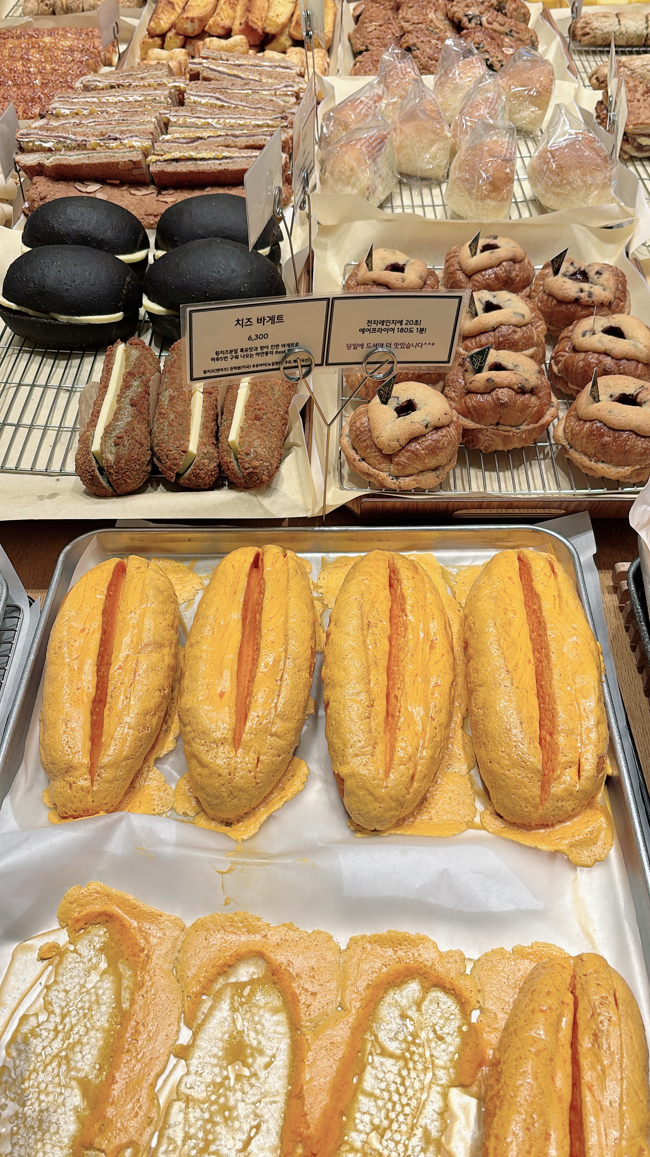 화이트롤은 차갑게 먹어야 맛있는 빵이고요, 황치즈 바게트는 살짝 데워먹으면 더 맛있는 빵이랍니다.