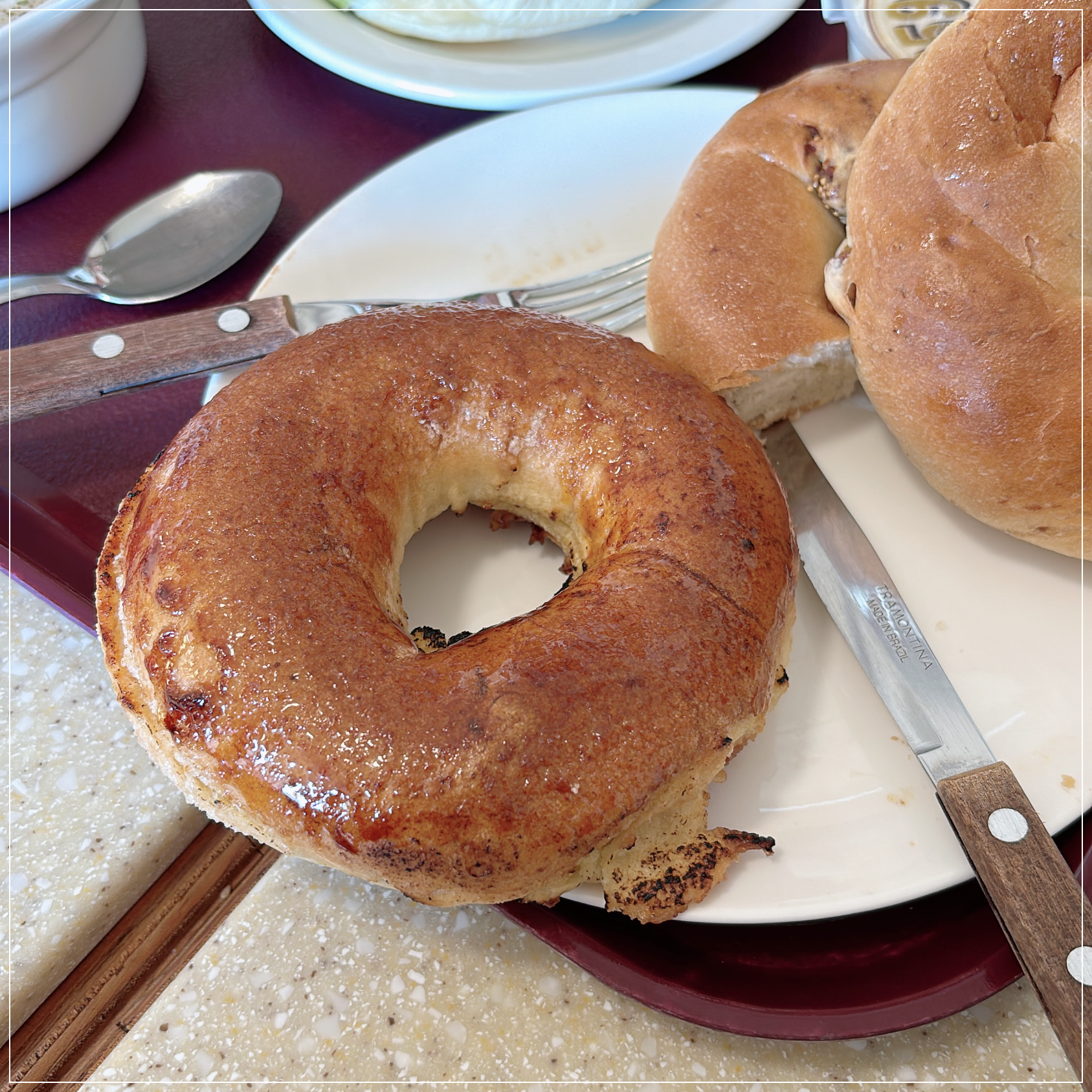 앞뒤가 바삭바삭하게 구워져서 너무나 맛있었던 프렌치토스트 베이글이었습니다. 금액을 추가하면 아이스크림도 얹어준다고 하시더라고요. 저는 베이글에 따로 토핑 하는 걸 별로 좋아하지 않아서 추가 없이 베이글과 커피 한잔을 마시고 왔는데요. 겉은 바삭하고 속은 부드러운 베이글이 너무 맛있어서 다음번에 행궁동에 갈 일이 생기면 또 방문할 예정입니다.