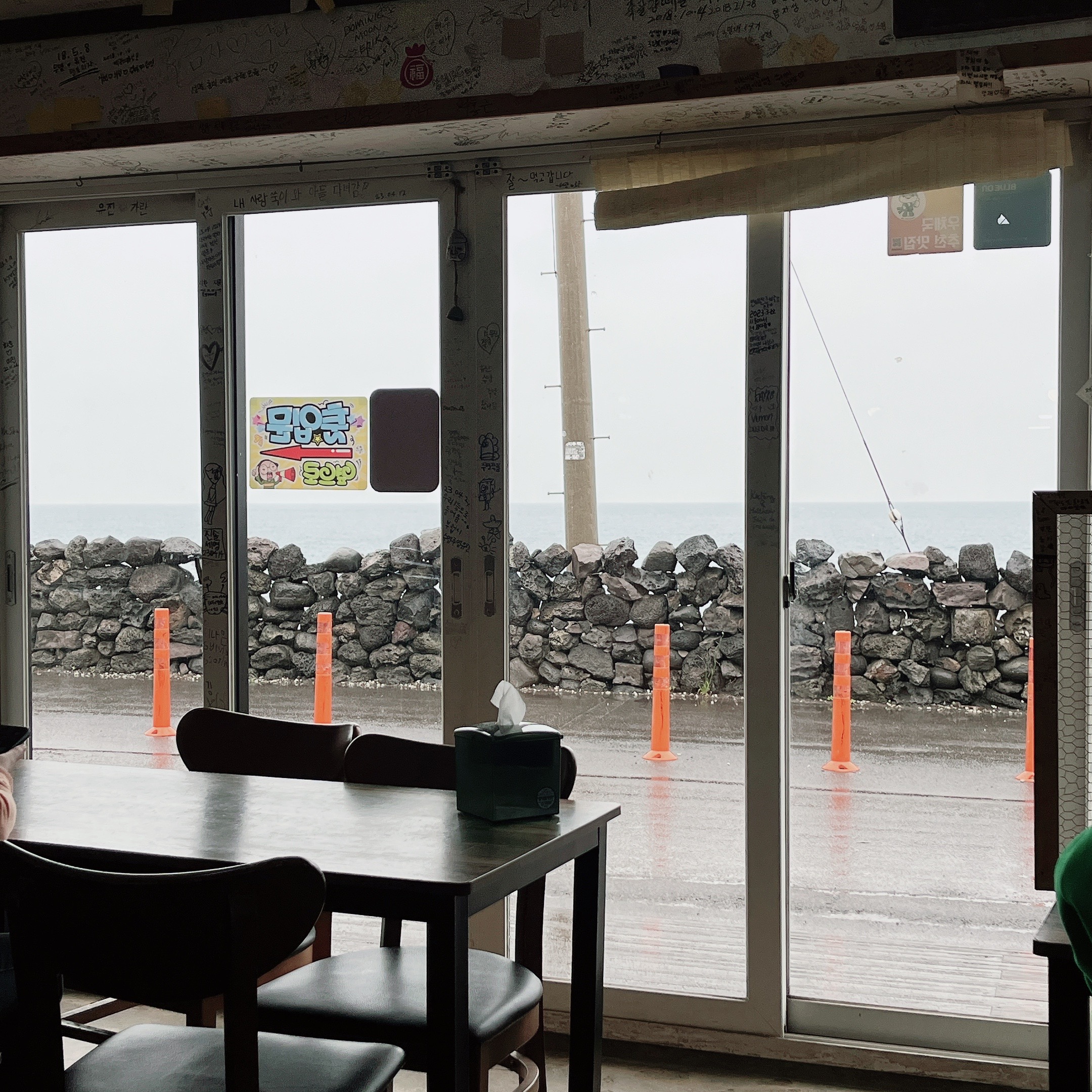 매장 안에서 바닷가를 볼 수 있다고 해서 혹했는데 사람이 너무 많아서 바닷가를 보면서 라면을 먹는 호사는 불가능했습니다ㅋㅋㅋㅋㅋ 매장에 테이블마다 진짜 사람들로 가득해서 찰나에 사진을 찍었네요ㅎㅎ
