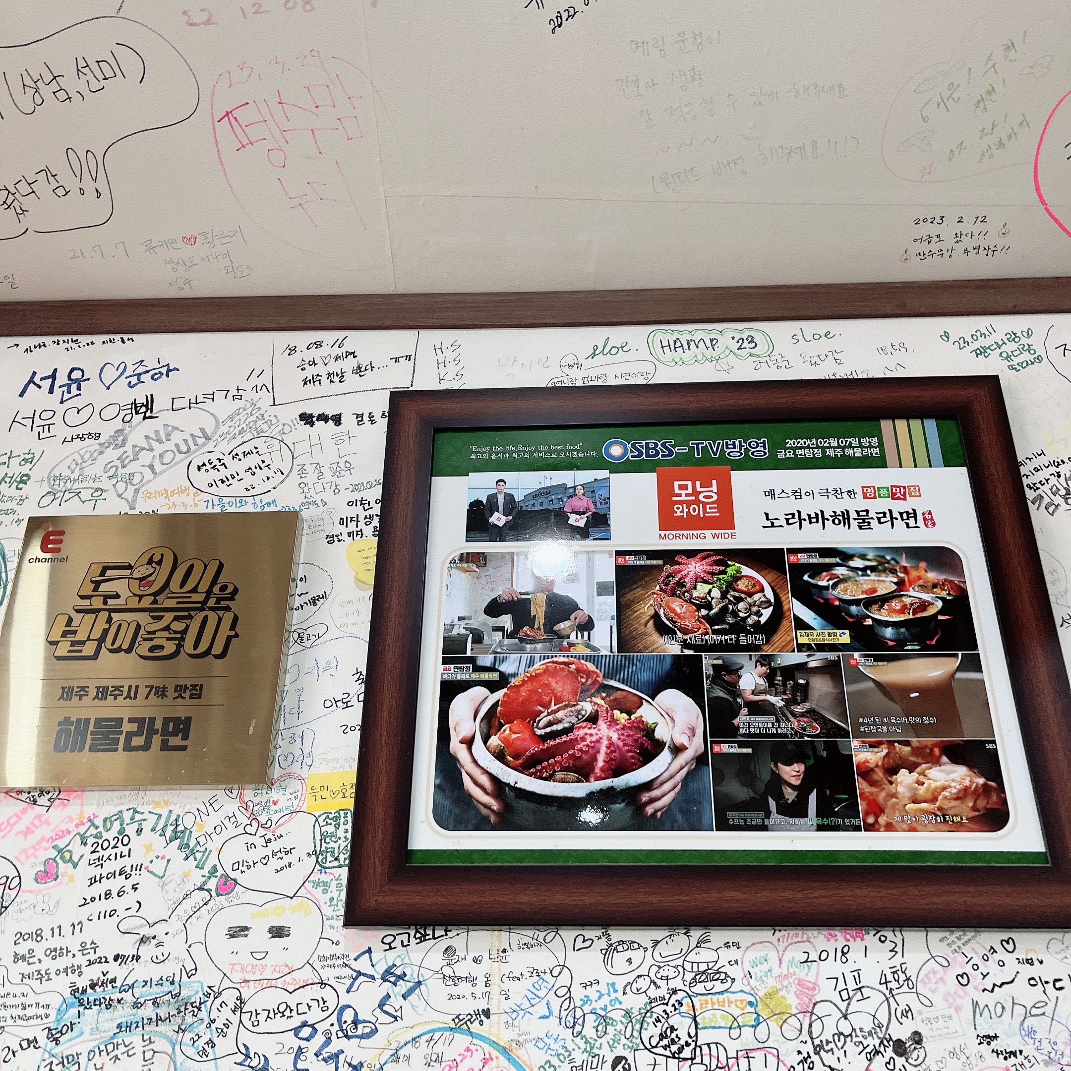 TV프로그램 '토요일은 밥이 좋아'에서 제주시 7미 맛집으로 선정되었고, '모닝와이드'에도 출현했다고 하는데 사진에 나오는 문어라면은 품절ㅠㅠ 아쉬운 마음에 해물라면을 주문했는데 제 입맛이랑은 안 맞았어요ㅠㅠ 해산물의 비릿함이 너무 심해서 먹다가 말았네요ㅠㅠ