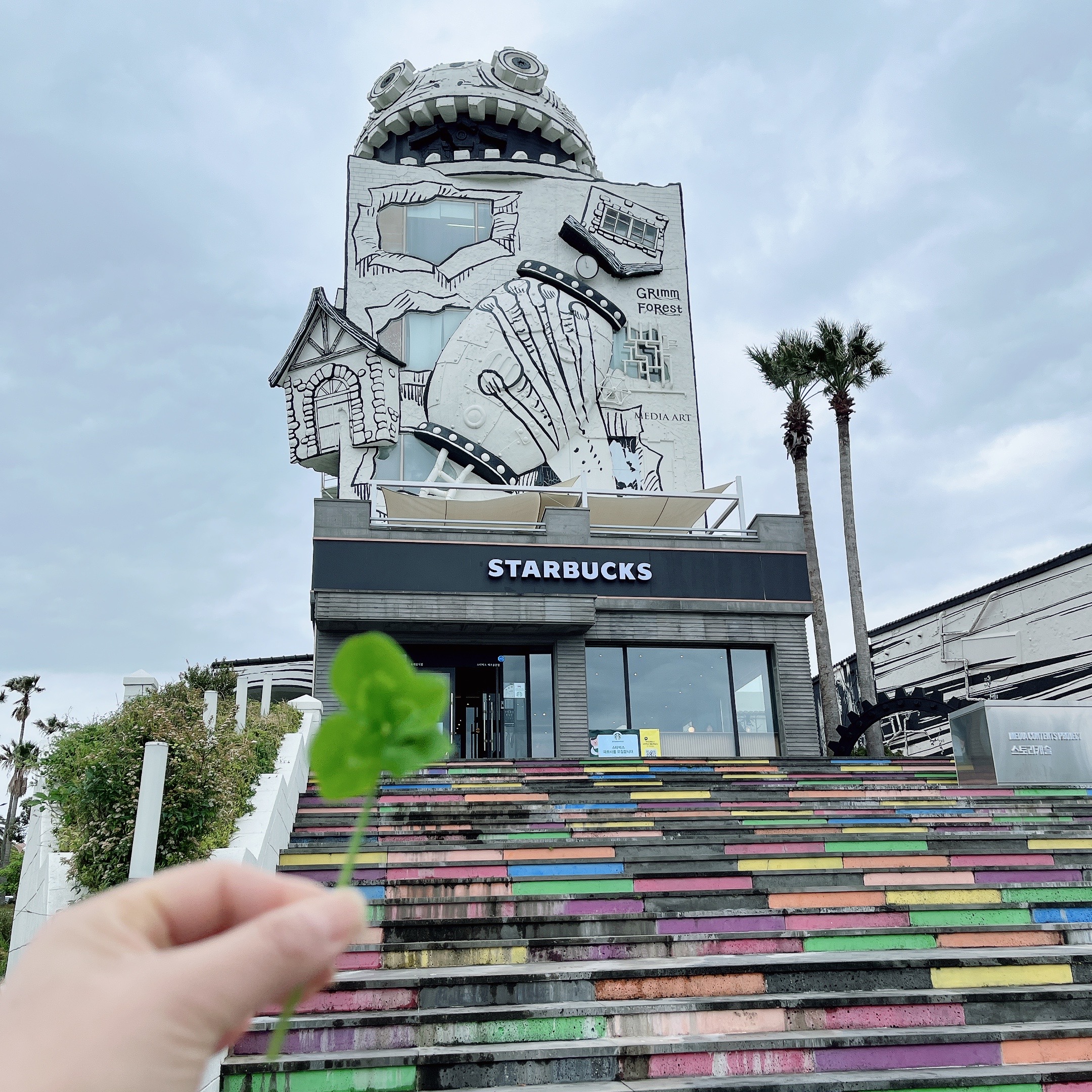 스타벅스 제주 중문점에 들어가려고 보니까 주변이 온통 토끼풀밭이었어요! 엇, 그럼 네잎클로버를 찾아볼까? 했는데 순식간에 네잎클로버를 엄청 많이 찾았다죠ㅎㅎㅎ 네잎 클로버는 책 사이에 끼워놔야 한다면서 스타벅스에서 커피를 포장해서 나온 뒤에 제주도 동네 서점에 가서 책을 사기로 했어요! 갑분 동네서점ㅋㅋㅋ