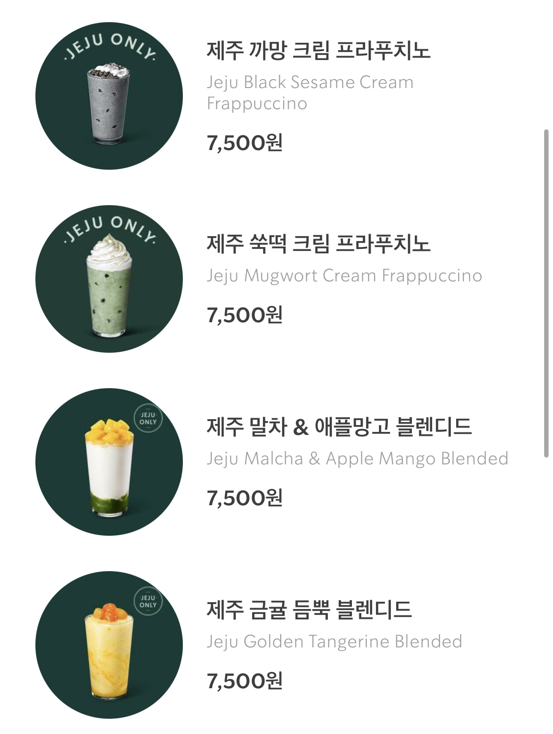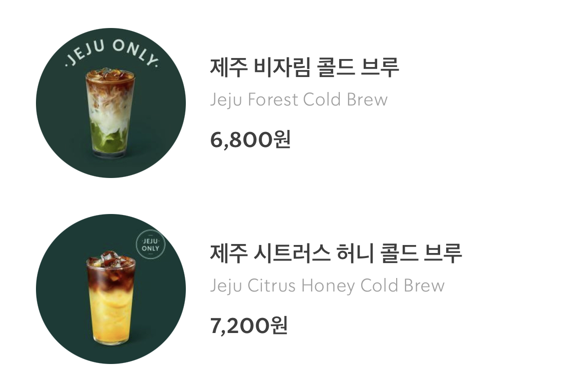 제주도에는 맛있는 것도 많고 지역마다 예쁜 카페들도 많아서 제주도에서 판매하는 다양한 메뉴를 맛보기는 어려울 것 같지만, 제주도 지역에서 판매하는 Jeju Only 메뉴들을 아래 내용을 참고해 주세요!