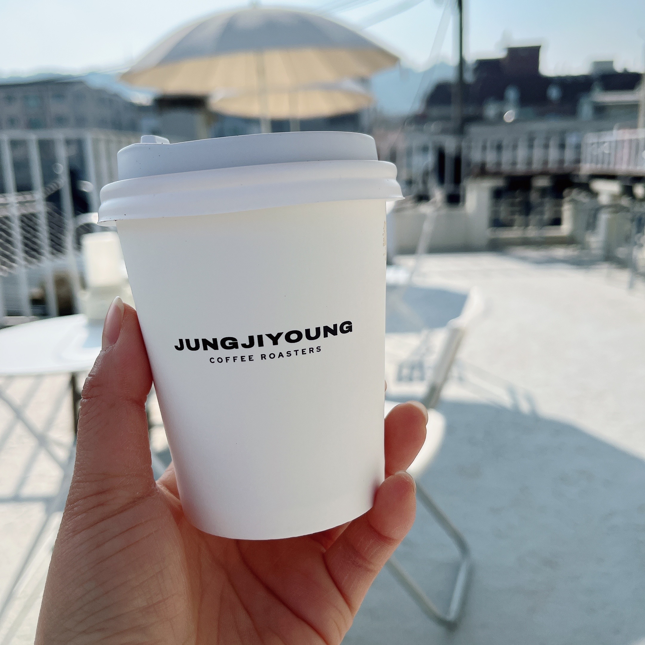 따뜻한 아메리카노 음료컵이 너무 귀여워서 사진으로도 남겨봤습니다. 저는 이렇게 컵을 들고 찍는 사진을 좋아하는 편입니다. 헤헤. 정지영 커피로스터즈는 수원 행궁 본점을 시작으로 화홍문점, 장안문점, 남수문점, 그리고 망포점까지 총 다섯개의 지점을 운영하고 있는데요, 제가 주문한 아메리카노는 5천 원에 판매하고 있습니다.